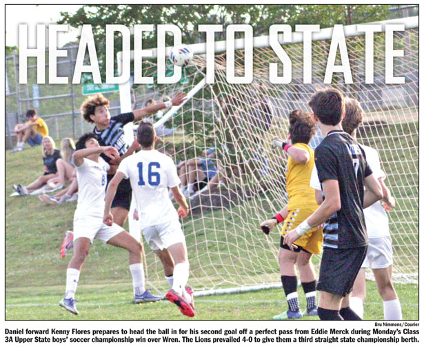 soccer team has already punched its ticket to the state championship with a 4-0 win over Wren on Monday and will play Beaufort High School on Saturday night at Irmo for the Class 3A title. Meanwhile, the Lion softball team will host Belton Honea-Path on Wednesday for the Upper State District 2 championship. The