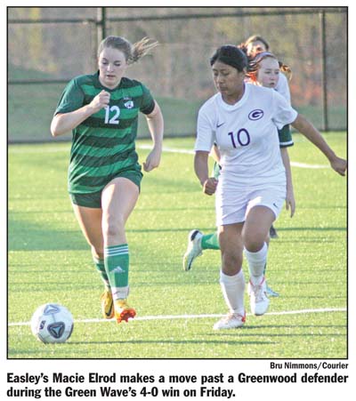 EASLEY — Off to an unbeaten start in region play, the Easley Green Wave girls’ soccer team hosted Greenwood on Friday hoping to stay in the driver’s seat in Region I-4A. The Green Wave were able do just that as they cruised to a 4-0 win over the Eagles.