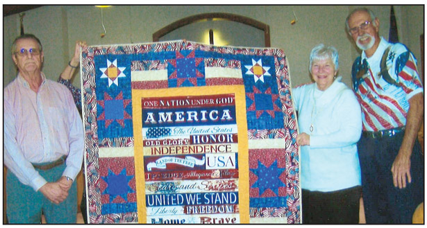 On Sunday, Feb. 12, James Alvin Bagwell was honored for his military service in the U.S. Navy during the Vietnam era by the Pickens-Oconee Quilt of Valor Committee. Bagwell was the honoree in a patriotic service during the worship hour of his home church, Shady Grove Baptist, where the pastor is Rev. Joe Pace. The Quilt of Valor team is led by Ronny and Linda Hall and Nancy Porter. Pictured, from left, are Alvin Bagwell, Linda Hall (behind quilt), Nancy Porter and Ronny Hall.