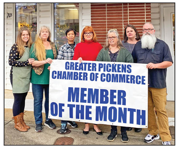 Pickens Country Florist has been chosen as the Greater Pickens Chamber of Commerce’s February Member of the Month. Pickens Country Florist is located at 207 Garvin St. in Pickens. The shop is open Monday-Friday 8:30 a.m.-5 p.m., Saturday 8 a.m.-5 p.m. and Sunday 8 a.m.-noon. Pickens Country Florist offers fresh and silk flower arrangements for all occasions. Visit pickenscountryflorist.com or call (864) 507-3106 for all your flower needs. Pictured are Kendal Drennen, Debra Baker, Kathryn Chen, Lois Porter, owners Shawn and Jeff Joseph and Debbie Gravely.
