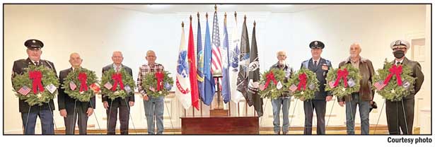 Mt. Pisgah Baptist Church in Easley wants to honor all 80 of the veterans who are resting in its cemetery. The church will be having its annual Wreaths Across America ceremony in December 2023 and needs help acquiring all the wreaths it will need. For anyone who would like to support the ceremony for 2023, for the purchase of two wreaths for $30 at wreathsacrossamerica.org/SC0226, the location will receive five wreaths due to a matching program that ends Jan. 17. Pictured, from left, are participants in the church’s Wreaths Across America ceremony last month. U.S. Army Staff Sgt. Kenneth Nations presented the U.S. Army ceremonial wreath, U.S. Navy Lt. David Waldrop presented the U.S. Marine Corp. ceremonial wreath, U.S. Navy Petty Officer, Third Class, Henry Earl Phillips presented the U.S. Navy ceremonial wreath, U.S. Air Force Master Sgt. Trent Berry presented the U.S. Air Force ceremonial wreath, U.S. Army Spec. 4 Robert Osborne presented the U.S. Coast Guard ceremonial wreath, retired U.S. Air Force Col. Larry Floyd presented the U.S. Space Force ceremonial wreath, U.S. Air Force Sgt. William Chavis presented the U.S. Merchant Marine ceremonial wreath and retired U.S. Navy Cmdr. Kevin D. Borden presented the POW/MIA ceremonial wreath.