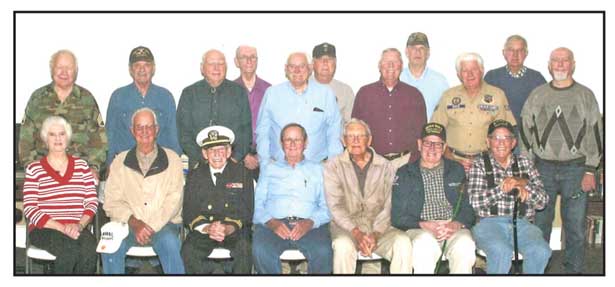 On Veterans Day, the Pickens Senior Center honored all of its veterans during a day of fun and fellowship. The veterans who were honored are, front row from left, Margie Reeves, Billy Singleton, Jim Pace, Marion Aiken, Joe Bolen, Raymond Dawkins and Greg Hester. In the second row are Earl Reeves, Ralph Smith, Evan Chastain, Glenn Grant, Donnie McKinney, Harry Maraska, Terry Houston, Jack Mize, Earl Rice, Tommy Parker and John Noel.
