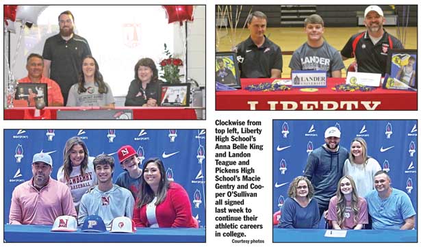 COUNTY — With the fall athletic season nearing its end, the first signing period of the year is here for high school athletes, and students from Pickens and Liberty have already taken advantage by signing to compete at the next level.