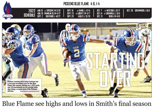 PICKENS — Moving into one of Class 4A’s toughest regions this season, the Pickens Blue Flame still managed to get close to .500 in head coach Chad Smith’s final season at the helm of the program.