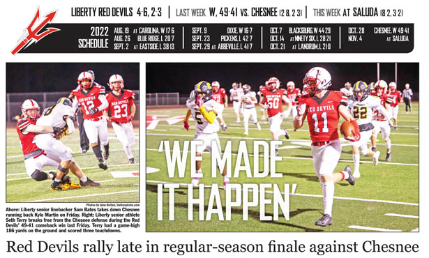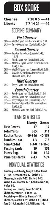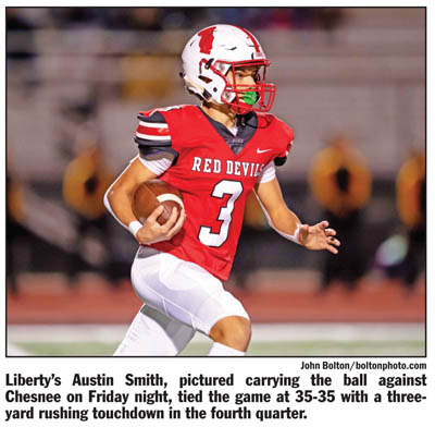The Liberty High School football team was a textbook case of that old adage during Friday night’s 49-41 win over the visiting Chesnee Eagles (2-8), with the Devils’
