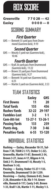EASLEY — Region I-4A champion Greenville scored 28 fourth-quarter points Friday night to pull away from an injury-depleted Easley in a 42-0 win.