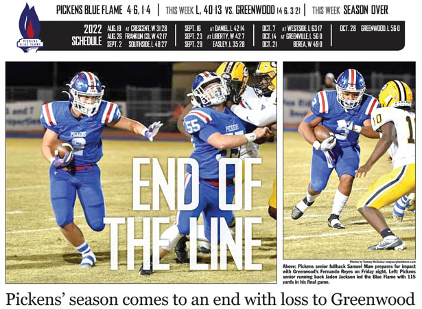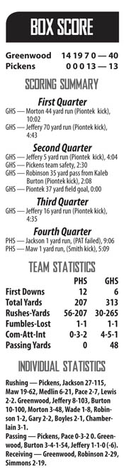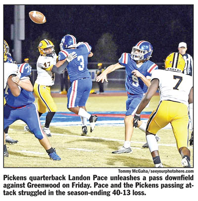 With Greenwood in town, Pickens was trying to capitalize on the momentum from the previous week’s big win over Berea, but it was not to be as the Eagles came out with a 40-13 win.