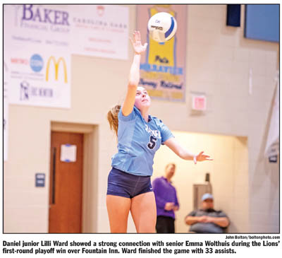 CENTRAL — With its first region title in a decade in tow, the Daniel High School volleyball team looked to keep its momentum going in the first round of the playoffs last Wednesday against Fountain Inn.