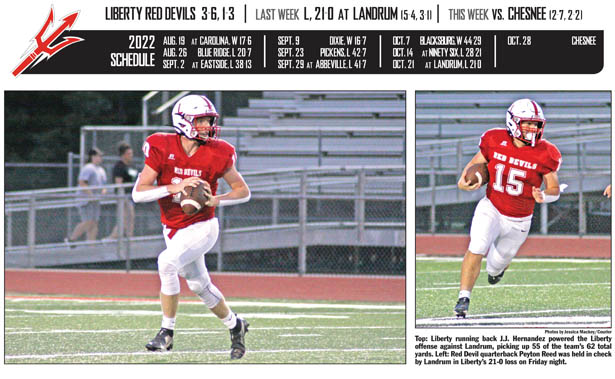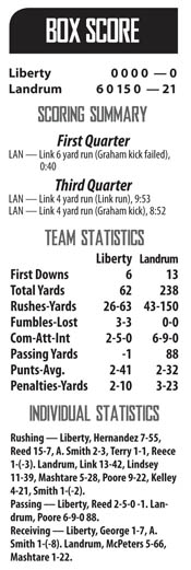 LANDRUM — Coming off a hard-fought overtime loss at Ninety Six the previous week, Liberty failed to get back into the win column on the road Friday at Landrum.