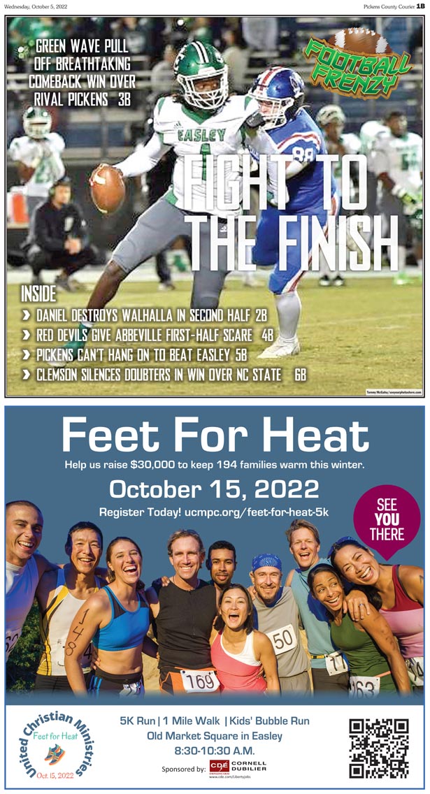 All this and so much more in this week’s FOOTBALL FRENZY, exclusively in the Pickens County Courier NOW ON SALE! Get the print edition at a grocery, drug or convenience store near you. LOGIN AND SEE ENTIRE SECTION!