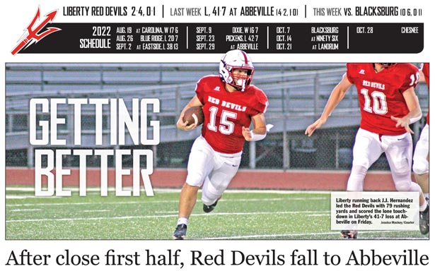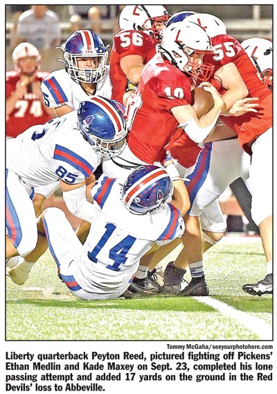 ABBEVILLE — Coming off a 48-0 loss to the Abbeville Panthers last fall in Liberty head coach Paul Sutherland’s first season, the Red Devils knew they were in for a challenge as they traveled to face No. 4-ranked Abbeville on Thursday night.
