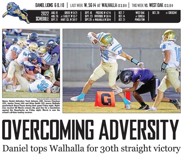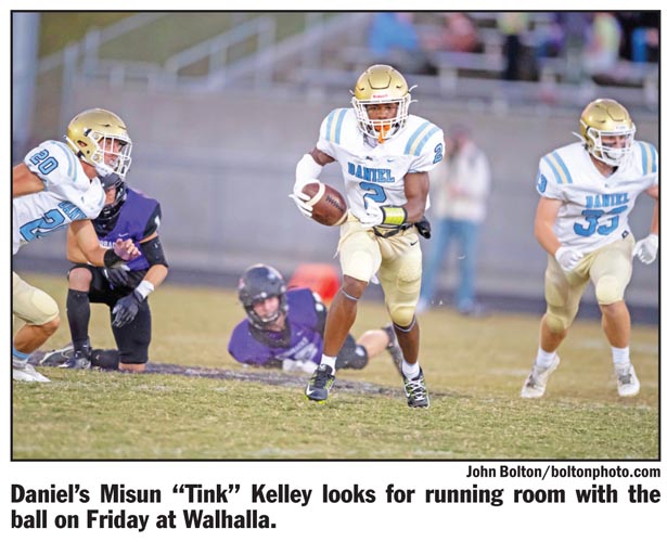 ranked team in Class 3A and might have even been tied if not for a pick-six from Daniel’s Misun “Tink” Kelley off a tipped pass in between two perfectly executed drives.