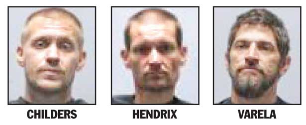 PICKENS — Three men face charges including possession of methamphetamine in connection with a bust at a Pickens automotive shop Friday.