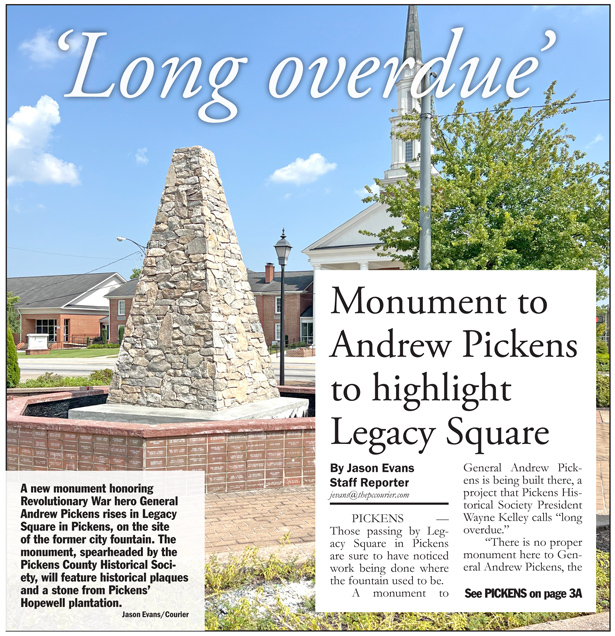 A monument to General Andrew Pickens is being built there, a project that Pickens Historical Society President Wayne Kelley calls “long overdue.”