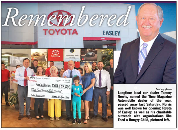 EASLEY — Longtime local car dealer Tommy Norris is being remembered for his loyalty, generosity and his love of cars, both on the dealer lot and on the racetrack.
