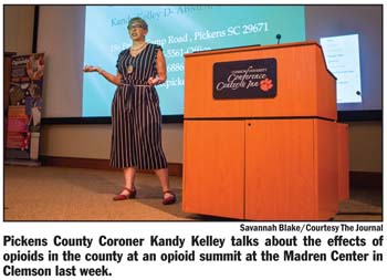 The Pickens County Opioid Summit was held Wednesday at the Madren Center in Clemson, and Coroner Kandy Kelley told the audience of more than 100 people that 32 people had died from drug overdoses to date.
