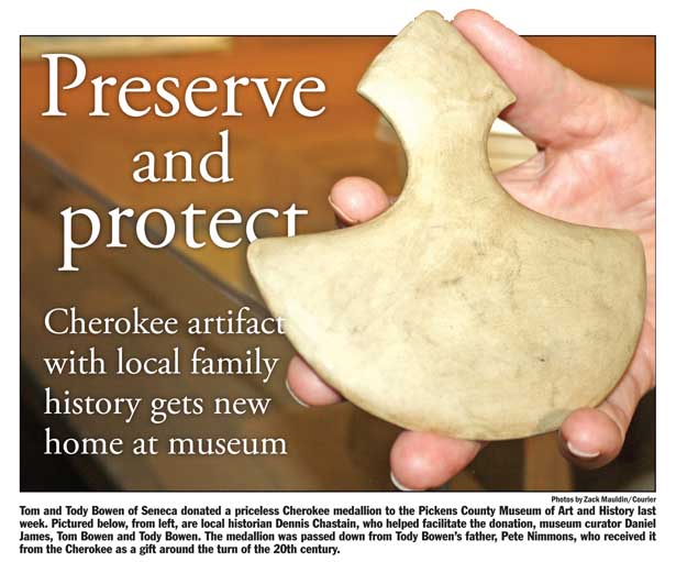 PICKENS — After being presented to an Upstate man as a sign of gratitude around the turn of the 20th century, a priceless historic Cherokee artifact now has a permanent home at the Pickens County Museum of Art and History.