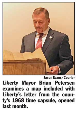 Pickens County mayors read from letters and other contents placed in a time capsule that was buried at the Pickens County Courthouse in 1968.