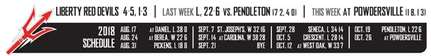 Playing with an undermanned squad, the Devils still had their chances to pull out the win, as they had more first downs and outrushed Pendleton on the night. However, an early interception that turned into quick points for the Bulldogs and a defensive bust that allowed Pendleton to break off a long touchdown put Liberty behind the 8-ball early and created a deficit the Devils were unable to overcome.