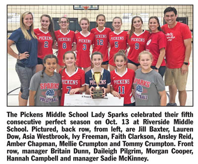 PICKENS — The Pickens Middle School volleyball team completed its fifth