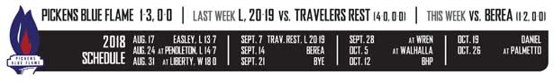That one word best sums up the Pickens Blue Flame’s season thus far in 2018. Pickens is now 1-3, but the Blue Flame players, coaches and fans know it should be better.