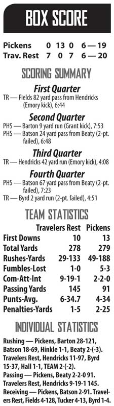 “It is pretty tough, but I wouldn’t say it was any worse than the loss to Pendleton or Easley,” Pickens coach Chad Smith said. “We are right there, but we just have to make plays. There were about 15 plays in this game that if we made them, we win the game.