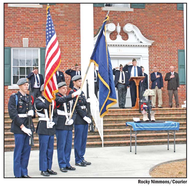 Instead of its traditional ceremony at Sunrise Cemetery, Pickens’ American Legion Post 11 hosted a Memorial Day event in front of the Pickens County Courthouse on Monday, paying tribute to those who have paid the ultimate sacrifice in service to our country. The event drew a sizeable crowd and featured the posting of the colors by the Pickens High School JROTC and speakers including State Sen. Rex Rice and State Rep. Davey Hiott.