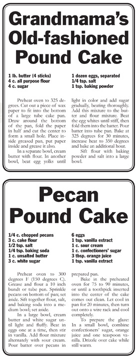 My grandmama’s old fashioned pound cake recipe calls for a dozen eggs, real butter and a pound of