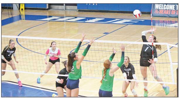 The Blue Flame came out of the gate firing, building an 8-3 lead early in the opening set behind kills from Kaci Gillespie and Chesney Yates. The Blue Flame went on another big run with Krysta Bennefield serving, scoring six straight points as they ran away with the opening set, 25-16.