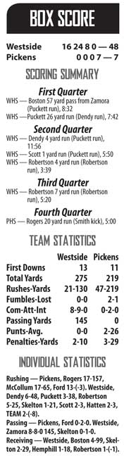 Pickens was forced to play its final game at Bruce Field, now owned by the city of Pickens, because of water issues on the home turf at Pickens High School.
