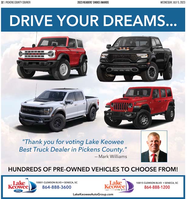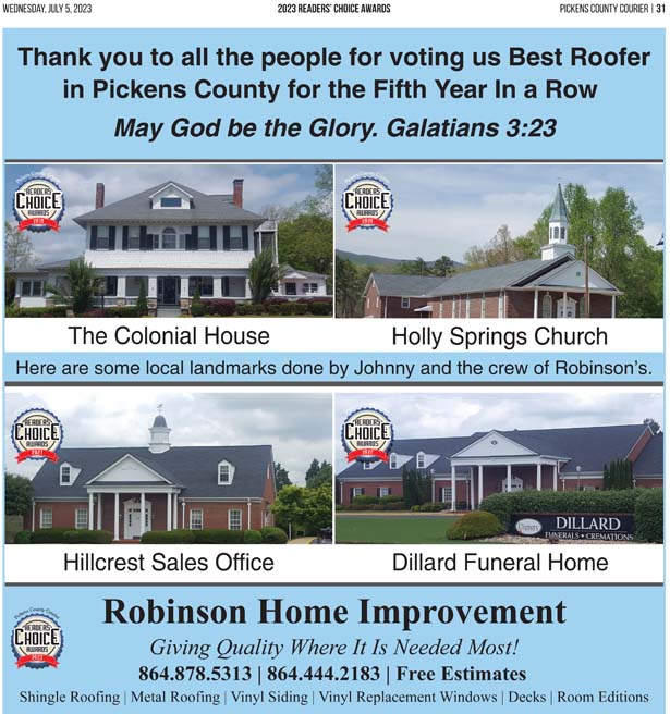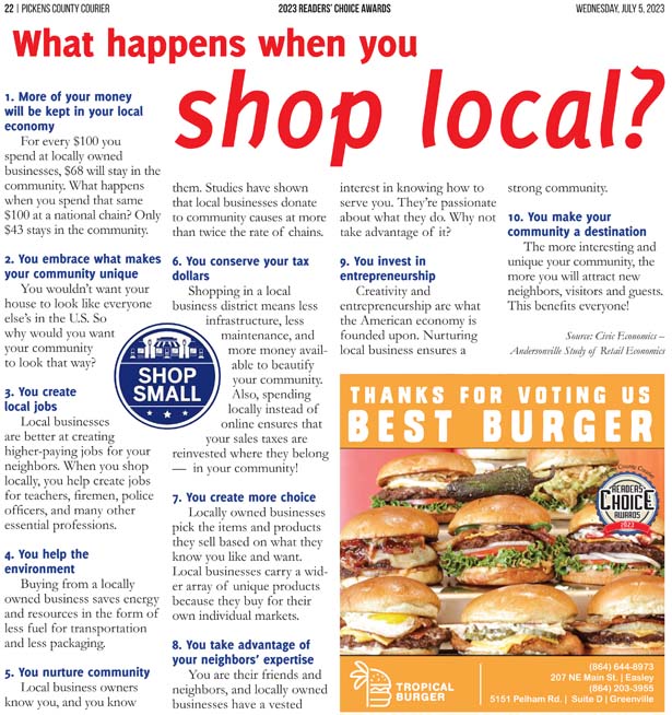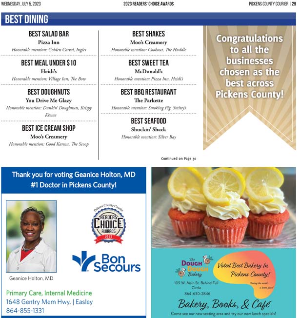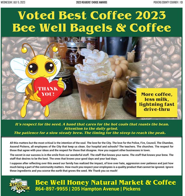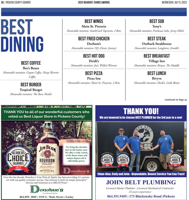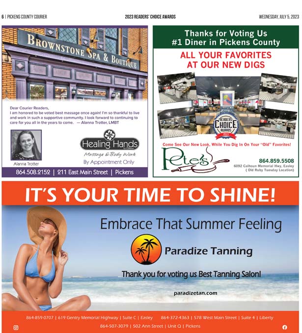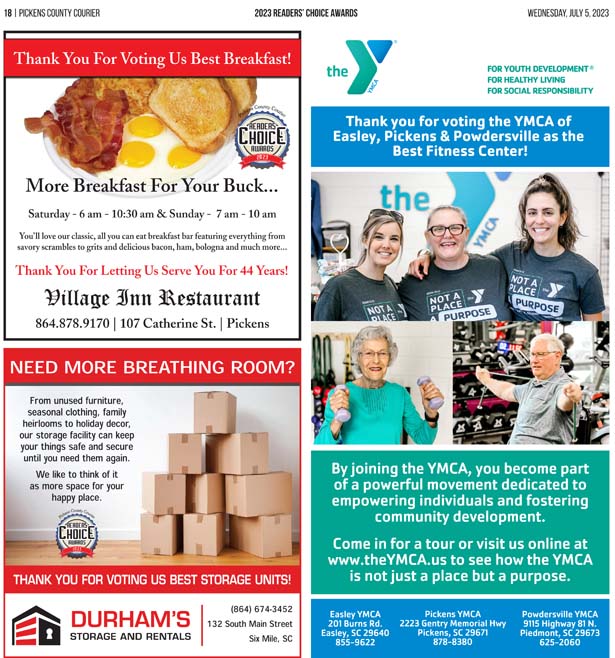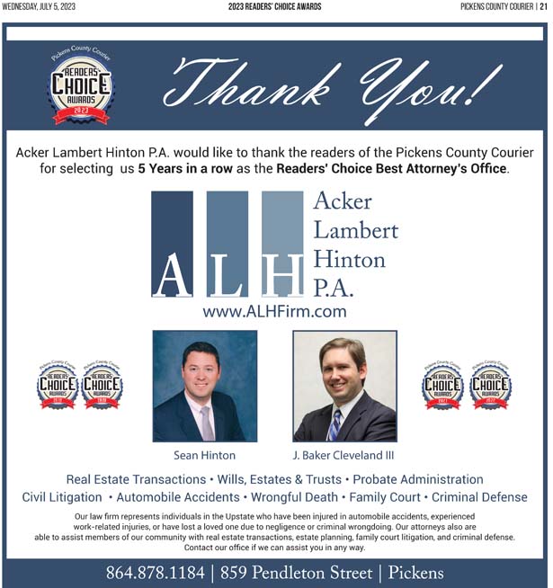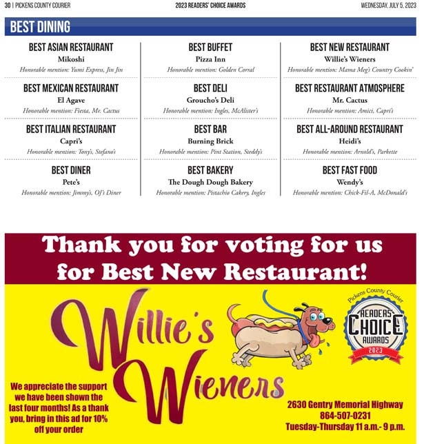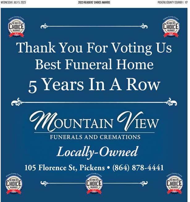 As a business locally owned and operated by Pickens County natives, the Courier knows just how amazing the people of our community are, and we cannot thank you enough for getting involved and letting your voice be heard in the annual Readers’ Choice Awards.