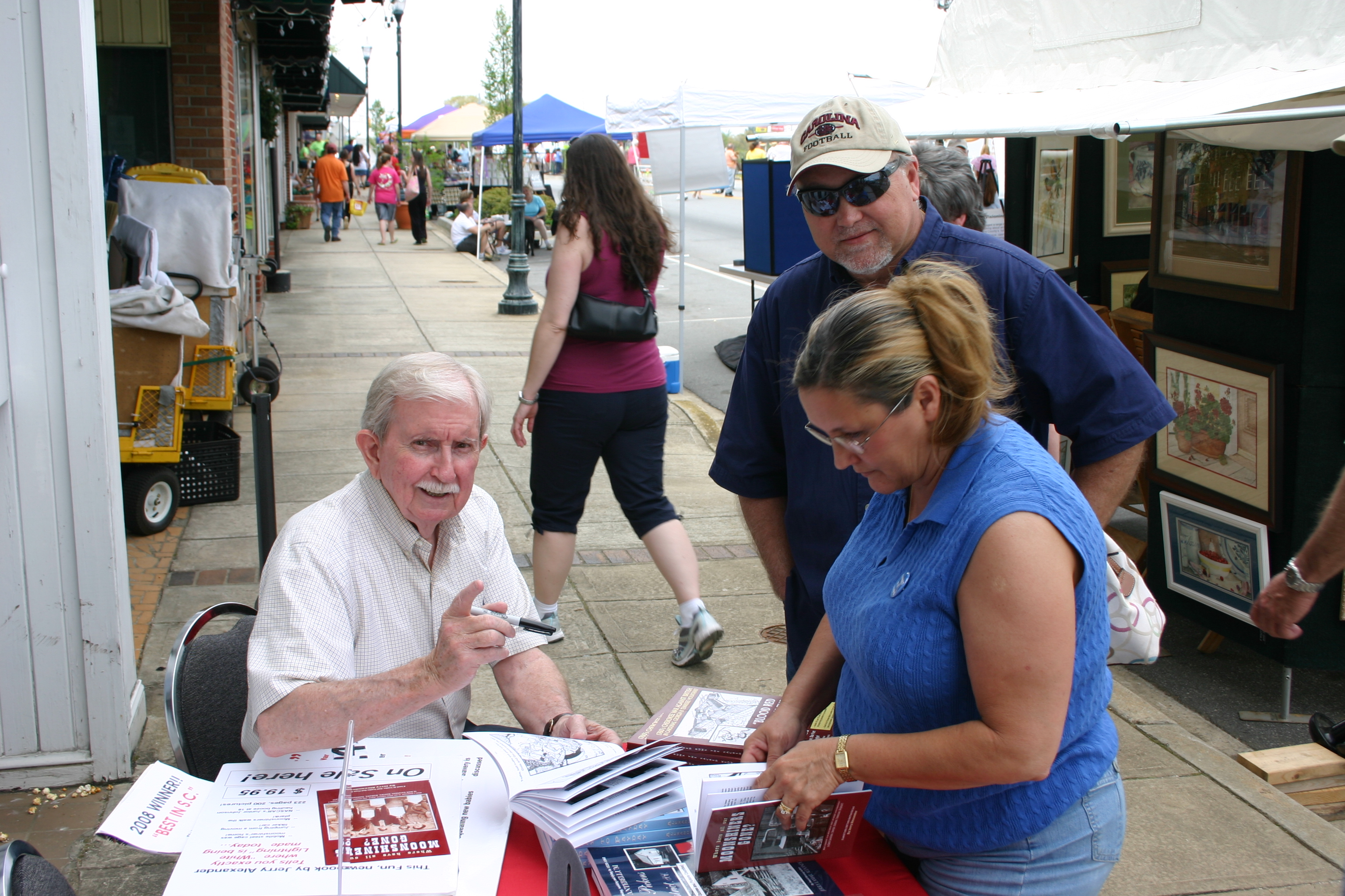 Longtime Pickens County newspaper publisher and columnist Jerry Alexander signs a copy of one of his most recent books for a pair of readers at a special signing held at Poor Richard’s during Saturday’s annual Spring Fling in downtown Easley. Hundreds converged on Easley to take in the sights and sounds of the annual celebration of the beginning of spring.