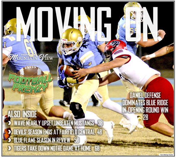 The high school football playoffs begin the Daniel defense dominates Blue Ridge in opening-round win. Wave nearly upset unbeaten Mustangs, Devils’ season ends at Fairfield Central and the 2023 Blue Flame season in review, along with coverage of the Tigers taking down Notre Dame at home.