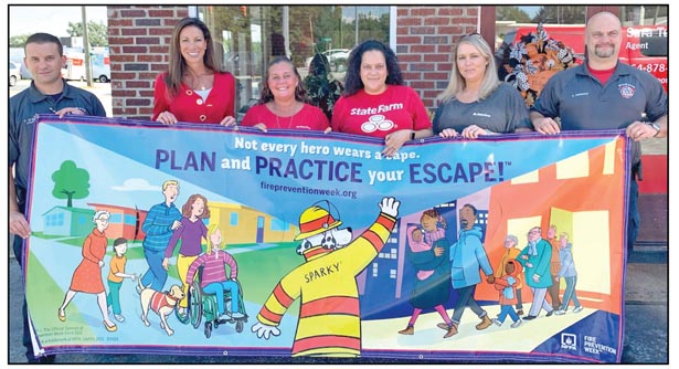State Farm agents know first-hand the trauma a family faces following a devastating house fire. That’s one reason why State Farm is taking a proactive approach to working with local fire departments to help communities reduce house fires. Pickens State Farm agent Sara Turgeon donated fire prevention kits to the Pickens Fire Department for National Fire Protection Association Fire Prevention Week Oct. 6-12. The kits contain educational fire prevention materials for homeowners and children. Firefighters can share the information at fire stations or at community events. Pictured, from left, are Pickens Fire Chief Chris Elrod, Pickens State Farm agent Sara Turgeon, Pickens State Farm office representatives Kristine Orzeck Barksdale, Carrie Sutherland and Rebecca Murray and Pickens Fire Department Capt. Rodney Crenshaw.